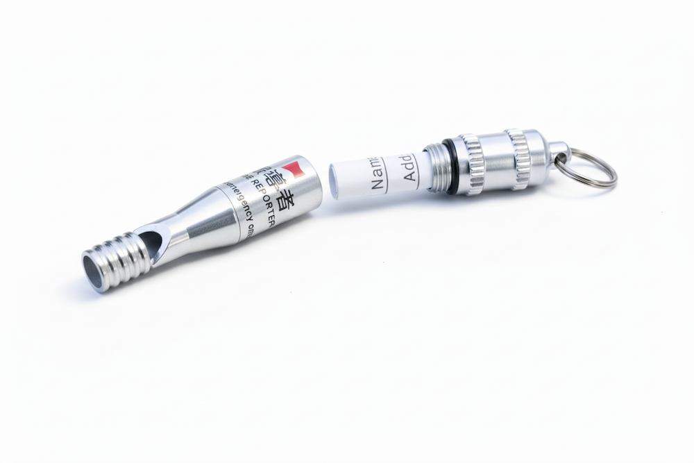 這款「註記式鋁製求生口哨」,是為了在無法通訊、必須求援的關鍵時刻所設計。由厚實鋁材打造,輕巧堅固,即使受到擠壓或碰撞,也能穩定吹出響亮哨音,快速引起周圍注意。